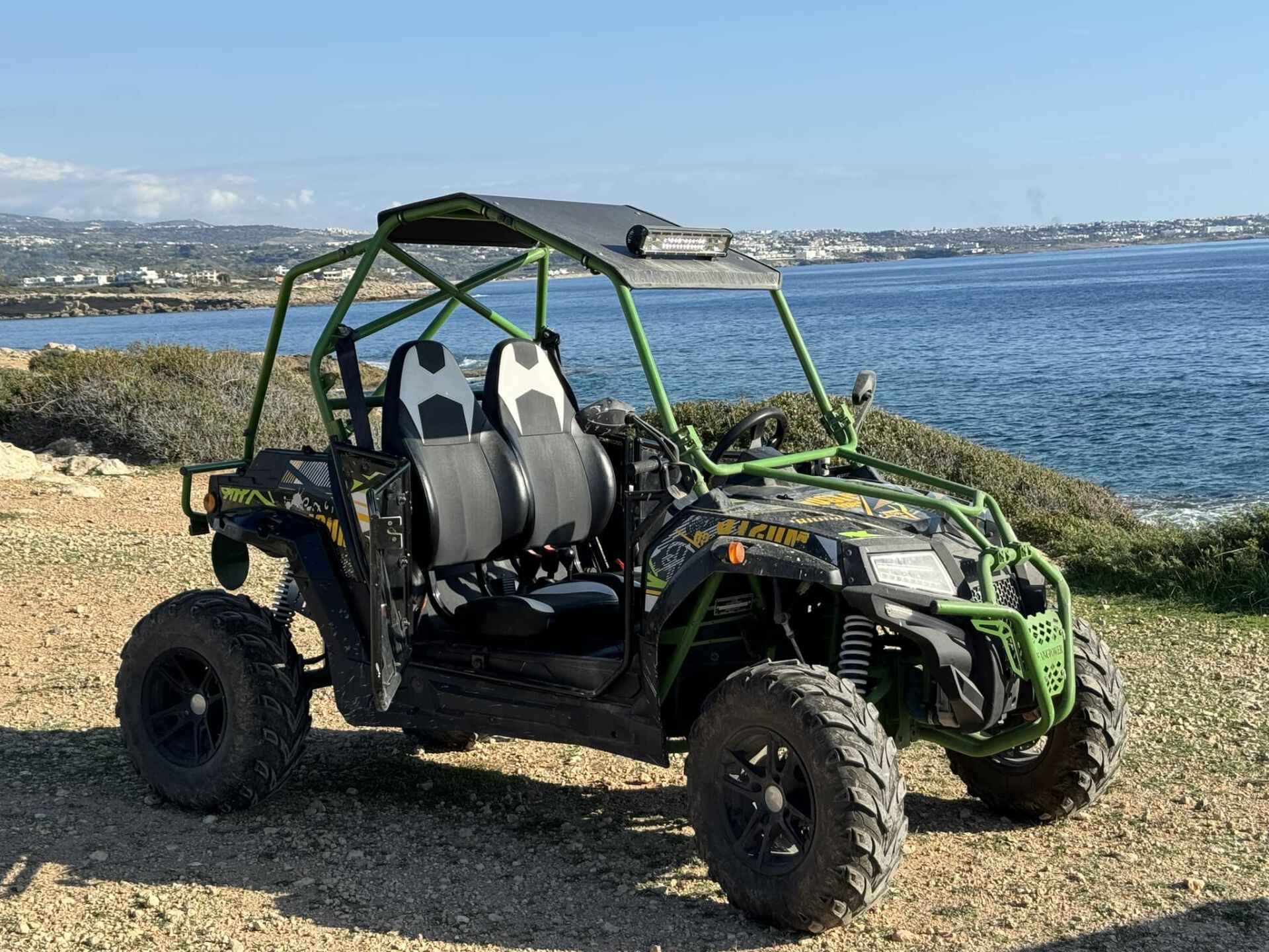 Zmiana pojazdu na: jeep, quad i buggy. Przejazd z Pafos do Coral Bay. Zwiedzanie po drodze: plaża Coral Bay, teatr naturalny, statek Endro III Wreck, Sea Caves (jaskinie morskie), zatoka St.Georges, klif White River, wąwóz Avakas, czas wolny i lunch w romantycznej restauracji Viklari. Powrót do bazy w Pafos. Transfer z Pafos do Larnaki.
